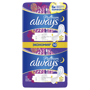 Always Ultra Platinum Secure Night Duo прокладки, 10шт